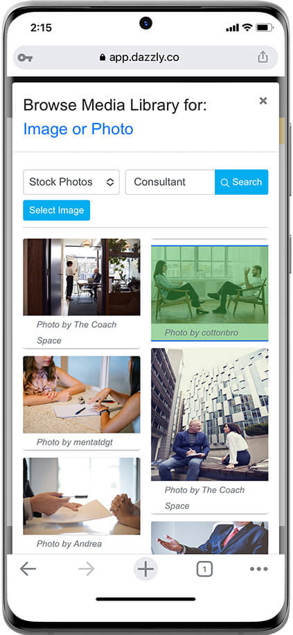 The first is that when you take a photo from your mobile device and load it into Dazzly, our smart software is able to process the image. The image is automatically optimized, resized and hosted globally. This ensures that search engines and visitors and can load your website fast.